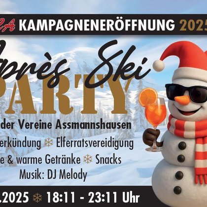 Ab 18:11 Uhr startet die CCA Après-Ski Party vorm Haus der Vereine in Assmannshausen mit Musik von DJ Melody