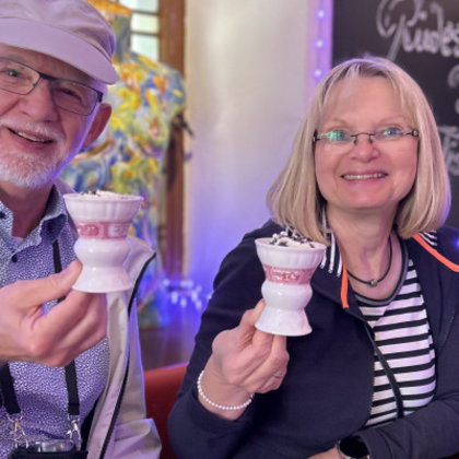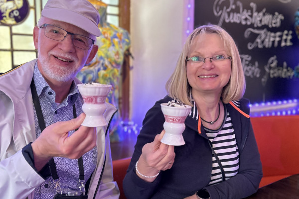 Zum Schluss kehren wir in einem besonderen Cafe ein um den Rüdesheimer Kaffee zu testen.