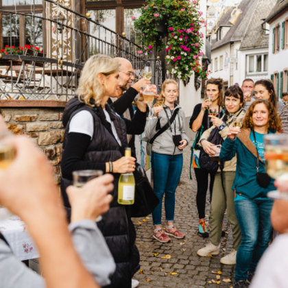 Wir besuchen auf unserem Rundgang alle wichtigen Ecken in Rüdesheim, unsere Burgen und Höfe, die Weltbekannte Drosselgasse mit Ihren charmanten Gastgebern, das älteste Gebäude und den Marktplatz.