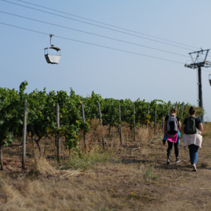 Das ist ein Paket, das Ihnen erlaubt, ganz individuell und ohne Führung durch die Weinberge zu wandern, und dabei Weine vom Weingut zu genießen — mit Infos per Video und QR-Codes.