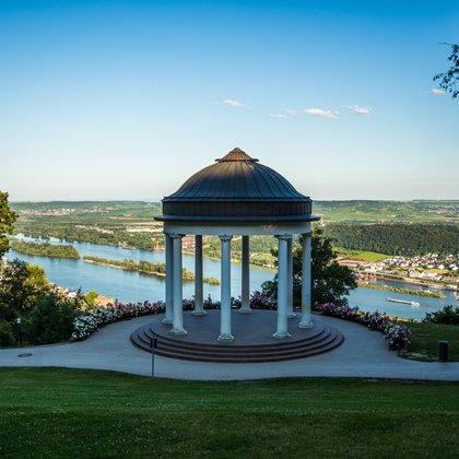High above Rüdesheim, at the Niederwald Monument, you first see the World Heritage Upper Middle Rhine Valley! But first, the Rheinsteig leads through vineyards and forest to the magic cave. Then follows the descent into the red wine mecca Assmannshausen.