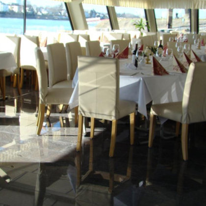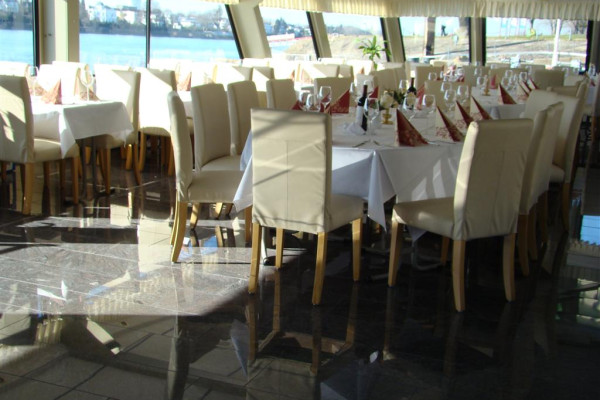 Seats on one of the two indoor decks will be reserved for you when you make your booking. The 2-course menu will also be served here. The sun deck (open deck) offers the best view of the fireworks. Seats there are not reserved – free seating applies.