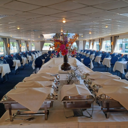 Your seats on one of the indoor decks will be reserved for you at the time of booking. The buffet will also be served on these decks. The open-air deck has open seating – perfect for enjoying views, taking photos, and dancing under the stars. Indoor seating is reserved and fixed. Window seats cannot be guaranteed.