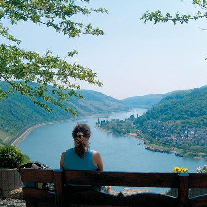 Since December 2010, new trains run hourly on RMV line 10. They have toilets, air conditioning, sockets and a large multipurpose area. This stage starts in the Rheingau community known especially for its red wines, Assmannshausen. Initially, the Rheinsteig® leads through the charming vineyard landscape of the sunny Rheingau, numerous views back to the Binger Loch or ahead to the left-Rhine castles Rheinstein and Reichenstein spoil the hiker. The path runs through diverse landscapes and gains additional attractiveness through these changes. So this stage offers something for everyone, and by the time you reach the highest point at the Paul Claus Hut, the climbs of the first third are already forgotten. A cultural highlight at the end of the hike is the charming town of Lorch am Rhein with its Gothic church. Wine taverns and vintner's inns invite you to stop for a meal.