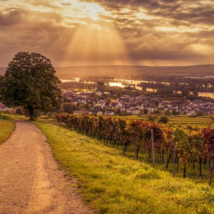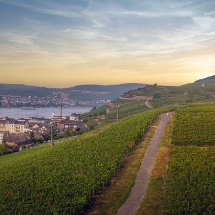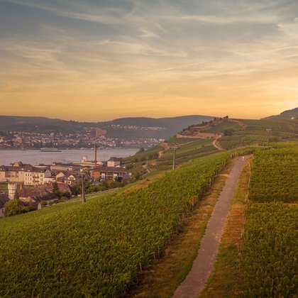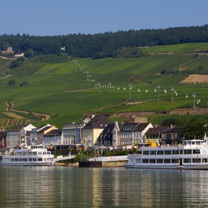 As a leisure and experience hotel centered around wine, we offer, in addition to a wine restaurant, our own vinothek & an in-house bike rental, the perfect starting point for your exploration tours in Rüdesheim, the Rheingau, and the entire UNESCO World Heritage site "Upper Middle Rhine Valley". It is your ideal base for hiking, Nordic walking, or cycling. From here, you can directly access the vineyards or the cable car station, which takes you up to the Niederwalddenkmal with its magnificent panoramic views.