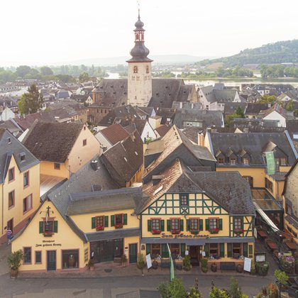 Our wine hotel "Zum Grünen Kranz" in the heart of Rüdesheim's old town, situated in a quiet location, is highly appreciated for its relaxed cozy atmosphere and the generational familial hospitality of the Nägler family (since 1826).
