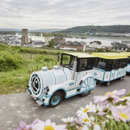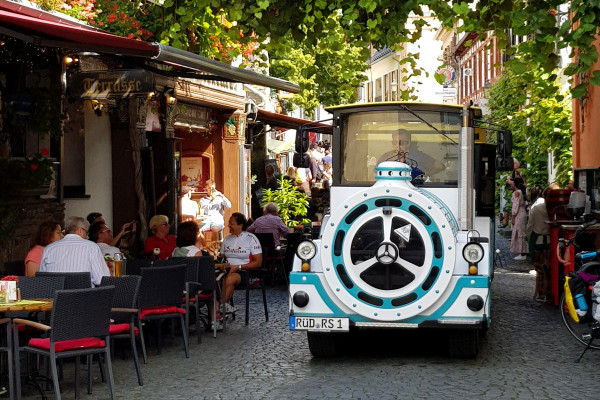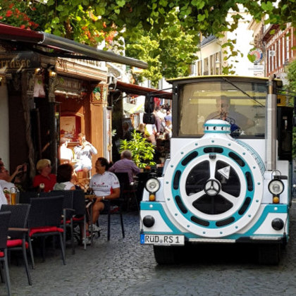 Während der rund 30-minütigen Rundfahrt durch die Gassen und Weinberge Rüdesheims erfahren Sie viel Wissenswertes über die Sehenswürdigkeiten und den Weinbau.
