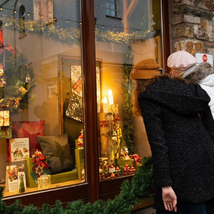 Häuser und Höfe in den Gassen von Rüdesheim sind festlich geschmückt. Händler und Handwerker bieten mit ihren Waren und Genüssen, Farben und Aromen einen Vorgeschmack auf Weihnachten am Rhein.