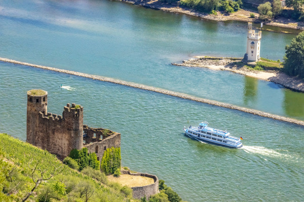 Die Burgenrundfahrt ab / bis Rüdesheim dauert ca. 1,5 Stunden und führt bis zur beeindruckenden Burg Rheinstein bei Trechtingshausen. Die Fahrt startet montags bis freitags um 15:30 Uhr, am Wochenende gibt es mehrere Abfahrten. Während der Fahrt erläutert ein Audioguide viele interessante Informationen über die Burgen und Sehenswürdigkeiten entlang der Strecke. Sie sehen unter anderem die Brömserburg, die Burgruine Ehrenfels, die Burg Klopp, den berühmten Mäuseturm sowie das Niederwalddenkmal.