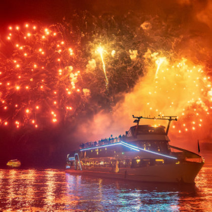 Unser Traditions-Feuerwerks-Event am Oberen Mittelrheintal bei Rüdesheim zieht seit 1977 Gäste aus aller Welt an. Erleben Sie einen grandiosen, romantischen, unvergesslichen Abend an Bord der "La Paloma" mit All-Inclusive-Angebot. Sie fahren exklusiv inmitten des Konvois und mit bestem Blick auf die Feuerwerke.