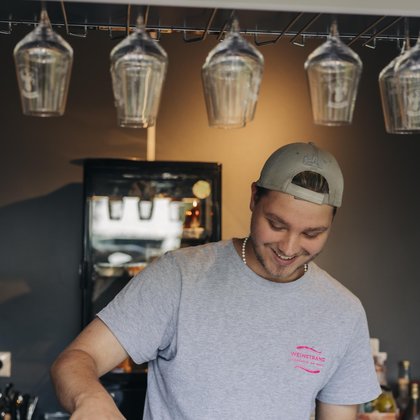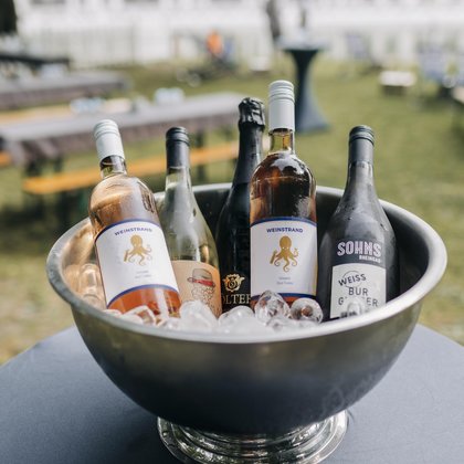 Wir arbeiten eng mit den Winzern aus der Region zusammen und haben immer eine herrliche Auswahl von Rüdesheimer Weinen im Angebot. Wer es spritzig oder alkoholfrei mag, kommt natürlich auch auf seine Kosten. Und für den kleinen Hunger ist bei uns auch immer gesorgt.